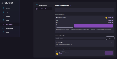 - Stake for Resources: On the left dashboard, click “Staking Rewards.” Enter the amount of WAXP you want to stake.